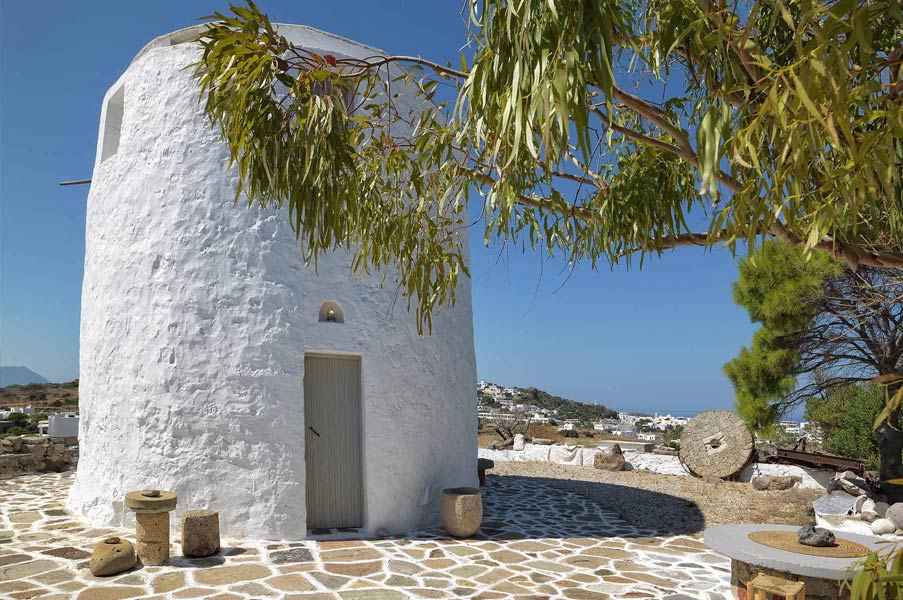 A trip starting in the morning that lasts until the evening, covering a large part of Milos, adding to the 4 to 5-hour tour, the Catacombs, the Archaeological Museum, the Windmills, the Fire Stream, the Great Mine of Milos, Phylakopi, Agios Konstantinos, Alogomandra, Empurios, lunch/coffee/dinner breaks, places on the way for photos and sights, such as the Monastery of Agia Marina.